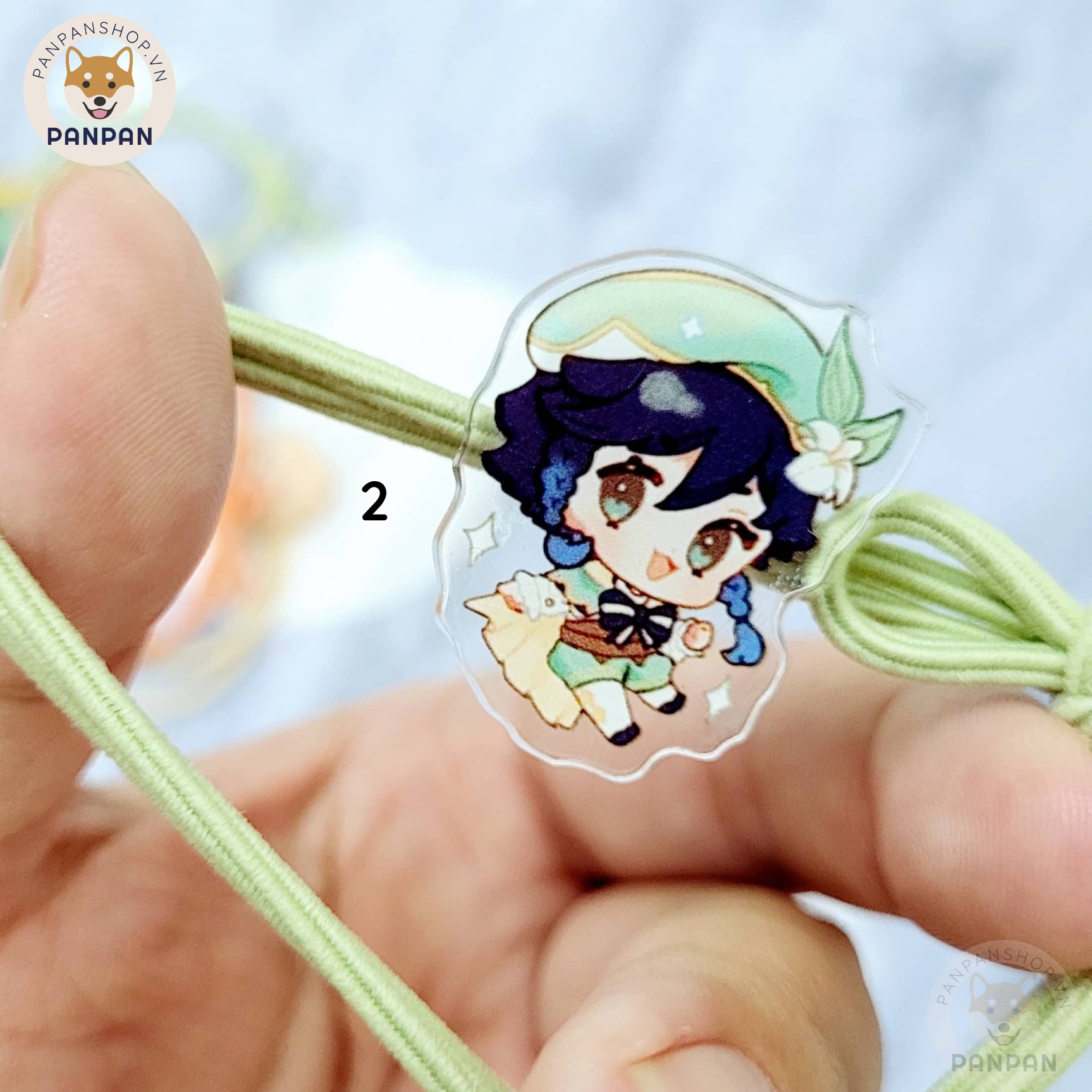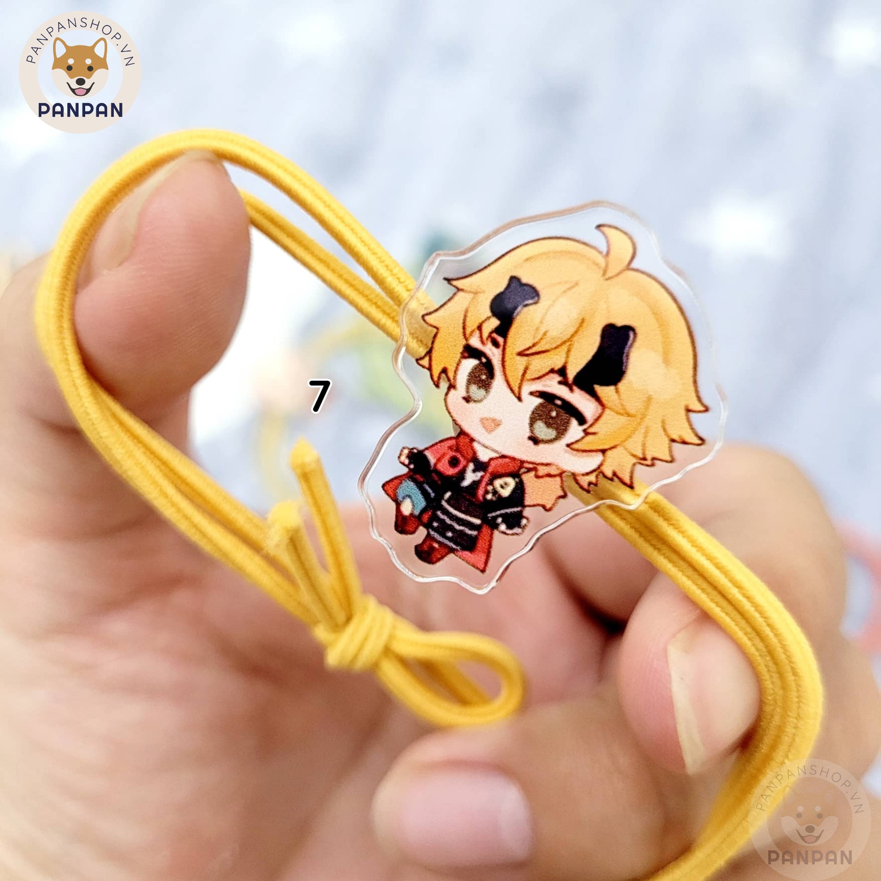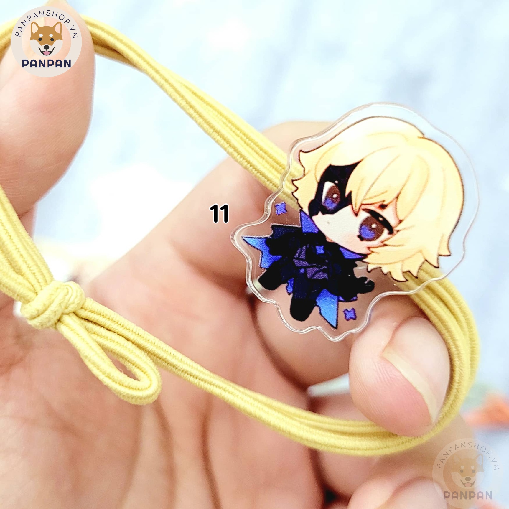- Chất liệu: Dây thun co giãn, charm acrylic 2 mặt chống nước