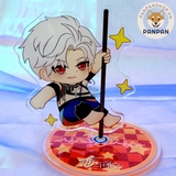 Standee múa cột sẽ gồm 2 phần: standee nhân vật và đế xoay (để xoay được nhiều vòng nhất thì nên để standee ở bề mặt phẳng)